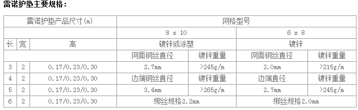 雷諾護墊主要有兩種:雙格板雷諾護墊和單格板雷諾護墊。